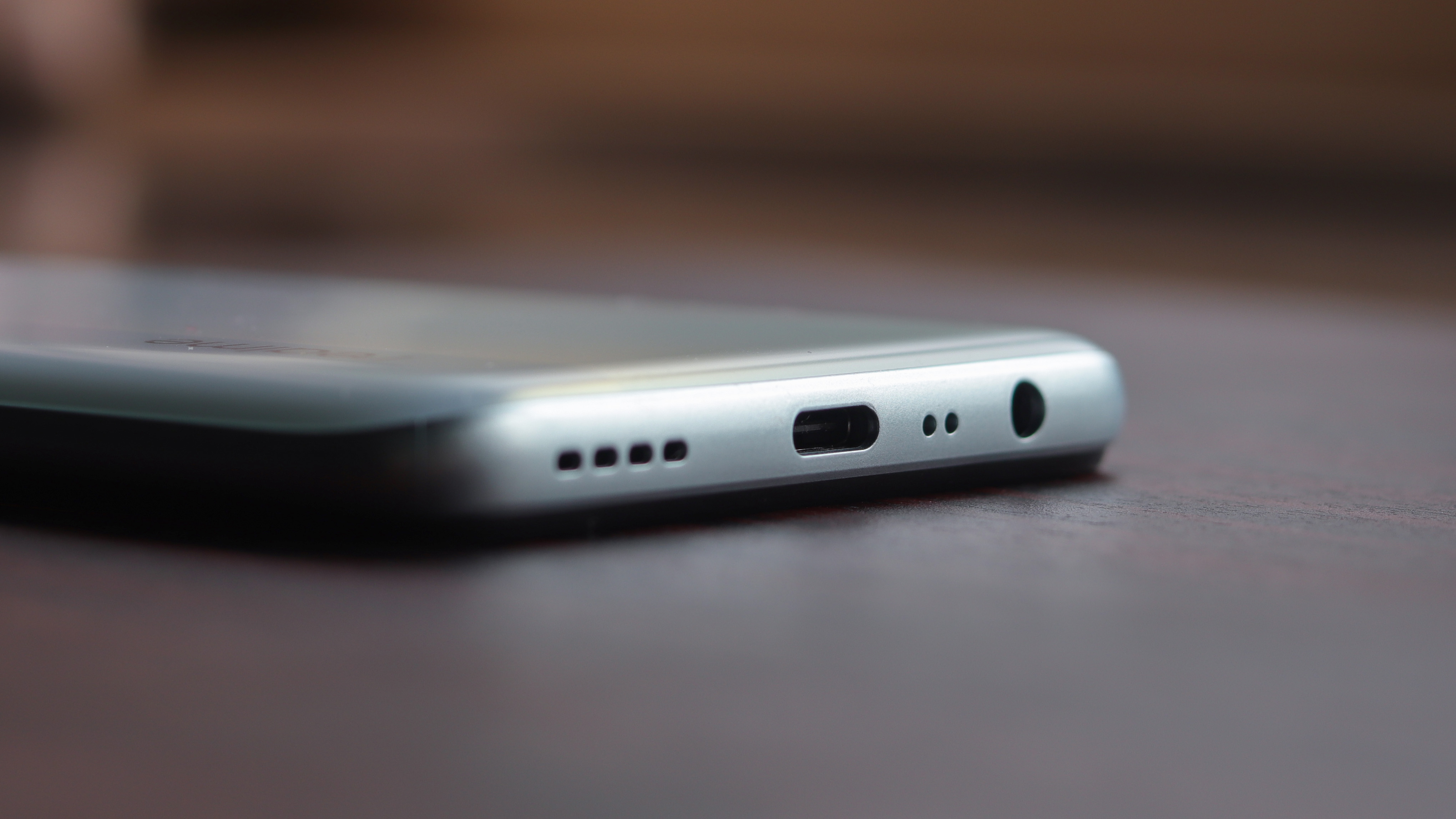 The chassis is also made of polycarbonate, further reducing a few more points off the premium feel. It matches the colour of the rest of the body as added attention to detail. The volume buttons are located on the left while the power button is on the right. The bottom boasts of a 3.5mm jack along with a USB Type-C port and the loudspeaker grille.